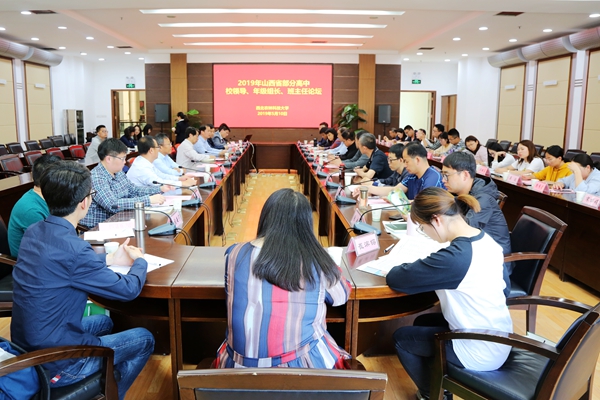 优质生源是加快一流大学和一流学科建设的保障,适合我校办学定位与使命的优质生源是因材施教、提升人才培养质量的基础。为进一步提高我校本科生源质量,振兴本科教育,实现高等教育内涵式发展,5月9日-10日,由学校本科生招生办公室和国产在线 联合举办“2019年山西省部分高中校领导、年级组长、班主任论坛”在我校召开。山西省忻州一中、大同一中、临汾一中、平遥中学、祁县中学5所高中校领导、年级主任、班主任,学校教务处、本科生招生办公室负责人,国产在线 领导和办公室相关人员及国产在线 山西籍学生代表参加了论坛。论坛由国产在线 党委书记曹军会主持。