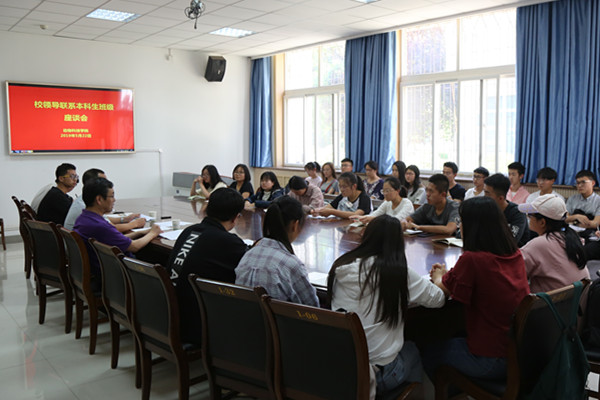 马建华首先向同学们做了自我介绍,他表示很愿意结合自己多年来从事学生工作的经历和经验,给同学们提供力所能及的指导与帮助。简单朴实的话语消除了大家的紧张情绪,也拉近了与同学们的距离,为座谈会开出效果奠定了基础。动科1802班全体同学也依次做了简短的自我介绍,并围绕兴趣爱好、饮食习惯、气候差异、人际交往、教学改革、时事热点等进行了充分的交流。