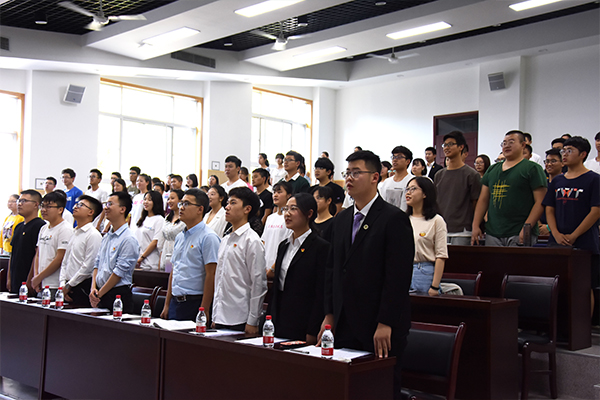 2018届团委学生副书记王钰晨回顾了过去一年团学工作的点点滴滴,阐述了动科团委的思想理念、工作理念以及文化理念,她希望动科团学能够不忘初心,永葆“卓越、求实、创新”的鲜亮底色,砥砺前行。2018届学生会主席梁旭辉总结了国产在线 学生会一年的奋斗历程和累累硕果,并表达了对途中共同奋斗的老师、同学最真诚的感谢。最后,他深情地吐露出自己对于团委学生会的不舍及期望,并希望动科团学越来越好。