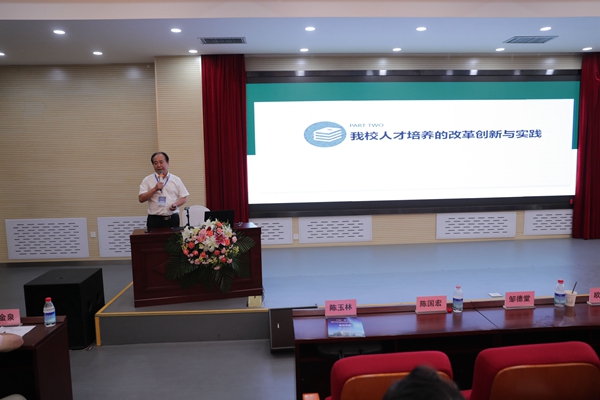 陈玉林副校长从高等教育发展的时代背景出发,重点就我校人才培养的改革创新与实践及面临的问题与思路举措两大方面,介绍了如何落实立德树人这一个根本任务,坚持“顶天、立地”二个建设理念,实施人才强校、国际化、信息化三大战略,履行“保障粮食安全、生态文明、人类健康和乡村振兴”四大学科使命,建成“卓越农林人才培养、引领干旱半干旱地区未来农业发展、助力实施乡村振兴战略、助推‘一带一路’建设、校地深度融合发展”五个标杆,助力世界一流农业大学建设。