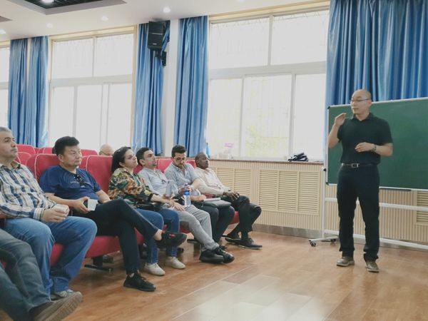 张恩平教授对中国肉羊产业发展模式和成就、产业化开发方面的技术和经验进行了详细介绍,着重对肉羊高效繁殖技术进行了系统讲解,学员们对讲座中非常感兴趣,尽管存在语言障碍(学员使用阿拉伯语),在翻译的帮助下,展开了热烈地讨论和交流,受益颇丰。