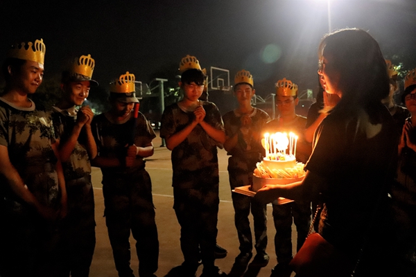 9.3日晚,“祝你生日快乐……”的歌声从军训场欢快地响起。国产在线 精心组织,为军训期间过生日的20余名新同学举办集体生日会。连队带训教官、新生辅导员等来到生日会现场,送上暖心祝福。