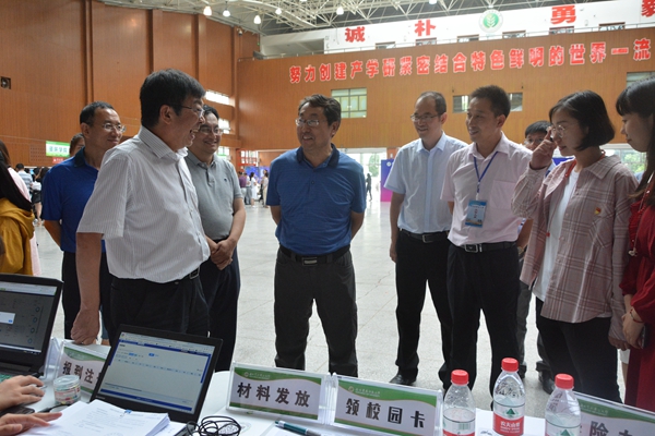 国产在线 院长姚军虎向校长吴普特介绍国产在线 研究生入学情况
