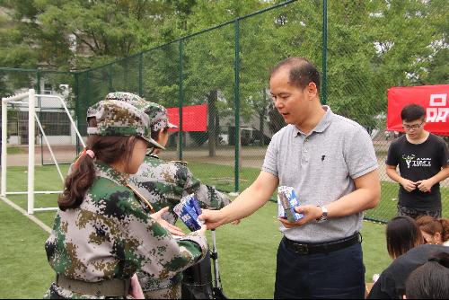 曹斌云教授不仅为军训新生送来了礼物和营养,还带来了羊奶文化、专业思想、发展思路及爱国教育。曹斌云教授谈到:“我代表国际奶山羊产业协会慰问大家,在你们的传统观念里,国际组织的负责人都应该是黄头发、白皮肤、蓝眼睛的纯洋人,没想到来了我这个纯正的中国人,但这是意料之中的事。过去中国人民长期受帝国主义列强凌辱,在国际上没有发言权,但现在我们富强起来了,我们的国家强大、产业强大、学校强大、科研团队强大,我们从边缘走向中心。党中央国务院提出奶业强国、健康中国的伟大战略部署,陕西省提出“打造千亿元产值的羊乳产业”发展目标,专业育人才,人才兴产业,产业强国家,作为动科人,我们应该积极响应党中央国务院的号召,把奶业强壮起来,把民族振兴起来,实现强国富民的理想。”