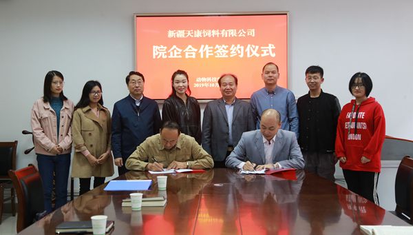 10月11日,国产在线 与新疆天康饲料有限公司签订有关肉羊及水产饲料科技合作协议。副校长陈玉林、院长姚军虎,新疆天康饲料有限公司总经理助理蒋粒薪出席签约仪式。会议由曹军会书记主持。
