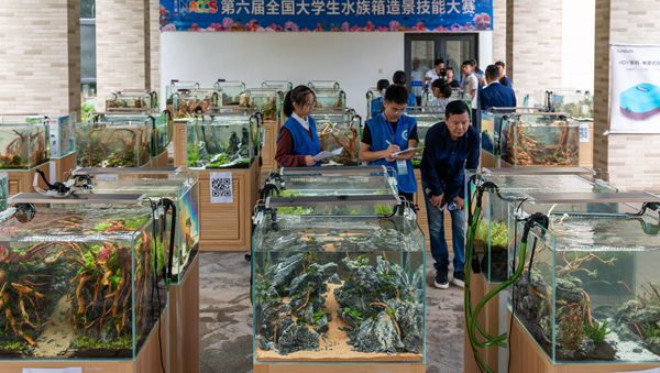 本届大赛得到了校院两级的高度重视,并组建了由国产在线 孙超副院长牵头,水产科学系王立新副教授总负责,熊冬梅副教授带队,园林艺术国产在线 赵明德副教授为艺术设计指导的工作小组,从水产养殖专业17级的18名报名选手中经过精心考核和系统训练,最终选拔了杨克晨、莫昊霖、张程、焦泽茜、李佳琳、王鸾金等6位同学,分别参加了大缸组、中缸组、微型缸组以及水陆缸组全部4个项目的比赛。