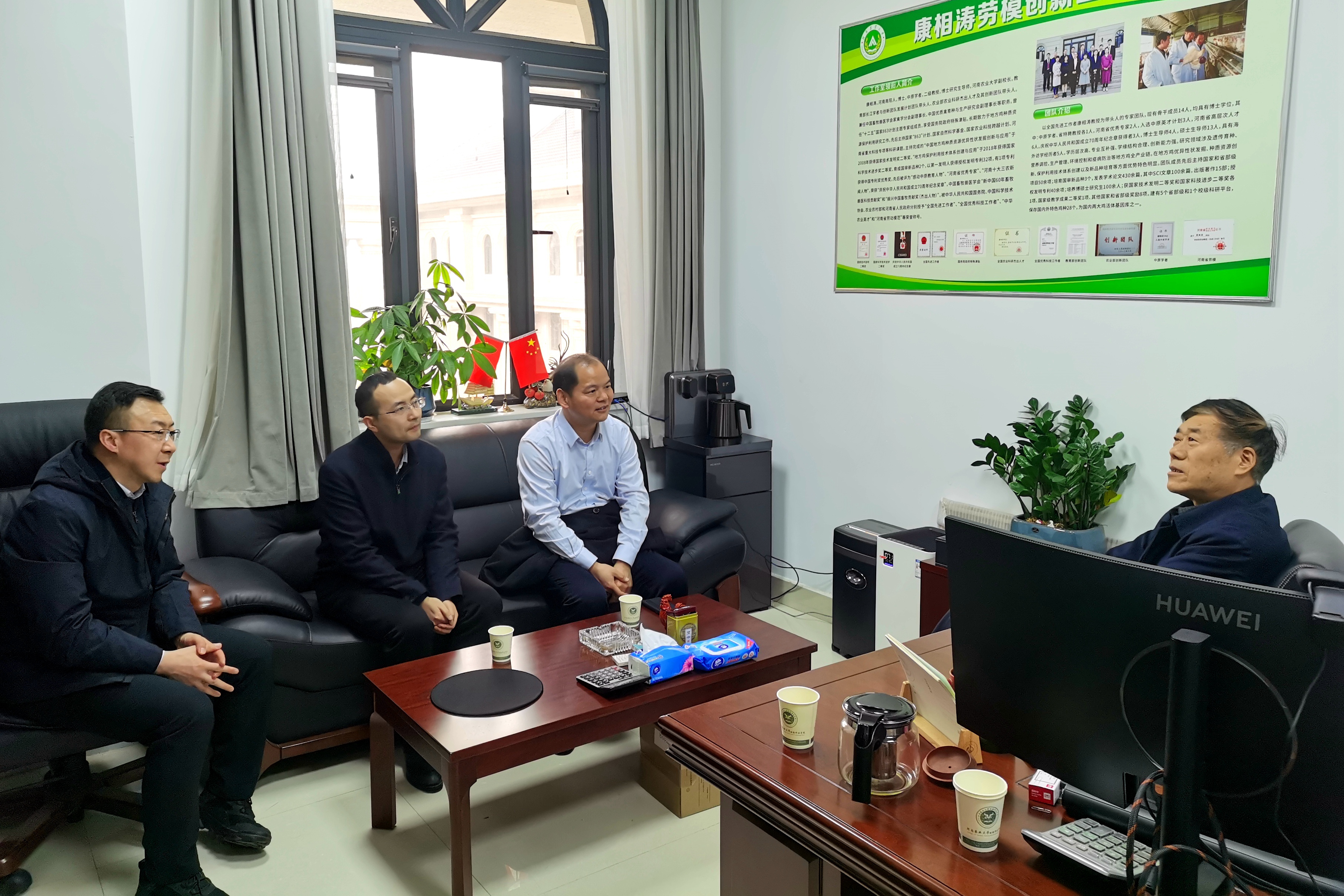 3月4日国产在线 党委书记曹军会、院长姜雨、副院长王小龙一行前往河南农业大学国产在线 开展调研并拜访康相涛院士。