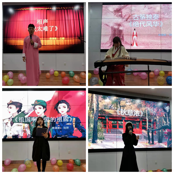 经过紧张的比赛与激烈角逐,申景雷同学凭借清唱歌曲《演员》获得一等奖;刘喆佳、刘萍分别凭借歌曲《秋意浓》与诗朗诵《祖国啊亲爱的祖国》获得二等奖;何盼、王弘浩、王建芳同学凭借古筝《绝代风华》、歌曲《童话》、歌曲《潇洒走一回》获得三等奖。
