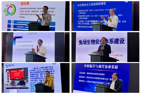 与会11位专家、企业高管分别作学术报告,分享最新科研成果,分析产业存在问题,探讨行业发展思路。报告依次为:国家兔产业技术体系岗位专家、中国农业大学武拉平教授作《现代兔业发展与乡村振兴》,陕西省宜君县农业局郭延红局长作《宜君兔业扶贫与乡村振兴实践》,国家兔产业技术体系岗位专家、扬州大学吴信生教授作《家兔品种培育与实践及江苏兔业发展概况与成就》,国家畜禽遗传资源委员会顾问委员会成员、江苏省畜牧业协会秘书长朱满兴研究员作《新时代家兔育种方向的科学把握》,国家兔产业技术体系岗位专家、中国农业大学王红英教授作《基于深度学习的图像处理技术在肉兔养殖智能化上的应用》,国家兔产业技术体系岗位专家团队成员、河北农业大学陈赛娟副教授作《饲料禁抗后,如何提高家兔生产效率》,陕西省家兔产业技术体系岗位专家、杨凌天地大动物营养有限公司技术总监崔伟作《精益求精做好每一颗“西农泰高”兔料》,太原市威尔潞威科技发展有限公司市场部经理王震作《浅谈影响种兔繁殖性能的营养问题》,青岛兔爱动物科技有限公司总经理阎英凯作《主动防御 降损增效》,南京华兔生物科技有限公司、江苏农科院畜牧兽医研究所薛家宾研究员作《如何正确预防2型兔瘟?》,陕西家免产业技术体系岗位专家、国产在线 王兴龙教授作《兔场生物安全体系建设》。