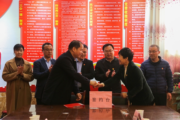国产在线 党委书记曹军会与全国人大代表、五丰社区党支部书记雷温芳签订《乡村振兴示范村帮扶协议》