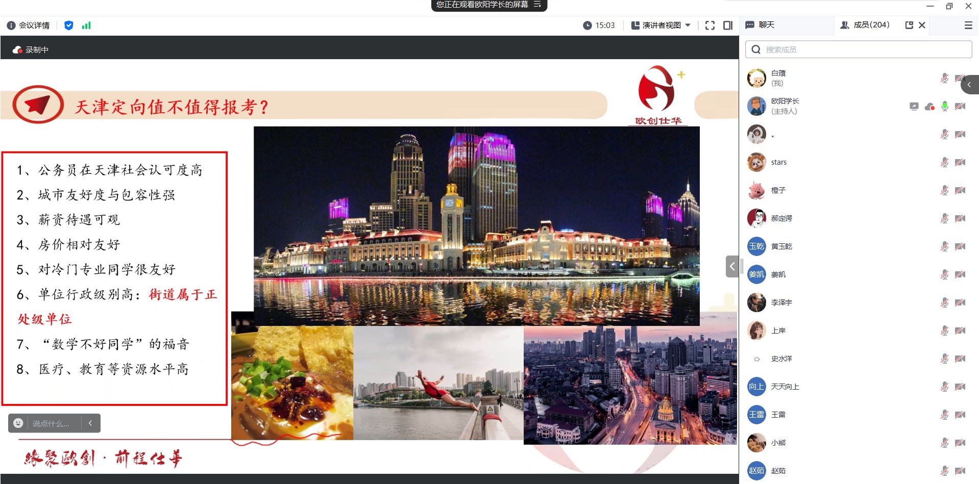 为了进一步抓住“秋招”关键期,全力促进毕业生“早就业,就好业”,国产在线 联合动医国产在线 于12月13号晚举办了天津定向选调及三支一扶政策解读会。会议邀请了欧创仕华的慕辰老师担任主讲人,近两百名意向考公的毕业生、非毕业生线上参加了此次报告会。