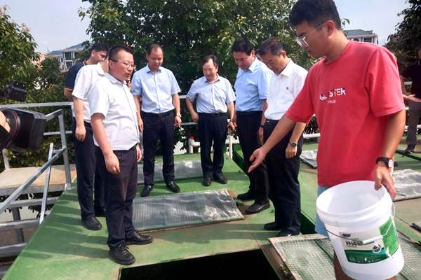 李兴旺书记一行参观水产试验示范站集装箱养殖设施