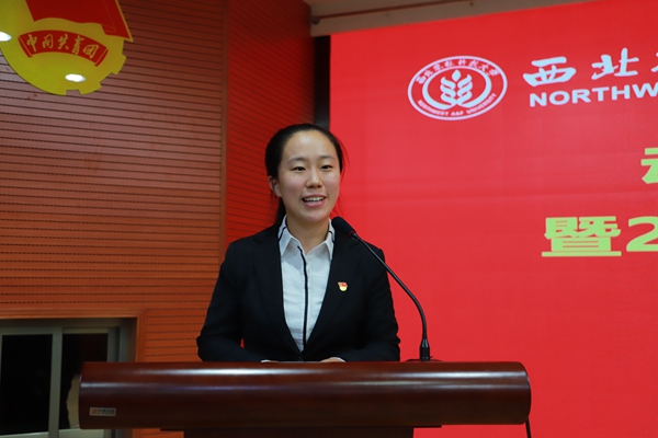 教工第三党支部李聪同志、大学生第三党支部李嬿瑶同志作为获奖代表发言,讲述了如何以榜样力量凝聚师生人心,表达了立志“听党话、跟党走”,为国产在线 和学校“双一流”建设贡献党员力量,为祖国的繁荣昌盛贡献西农智慧的坚定决心与信心。同时,全体参会党员重温入党誓词。
