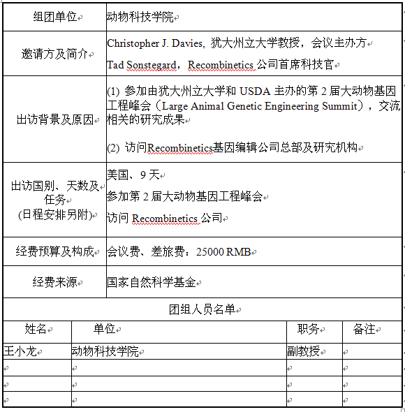 现将国产在线 王小龙副教授因公临时出国公示如下表: