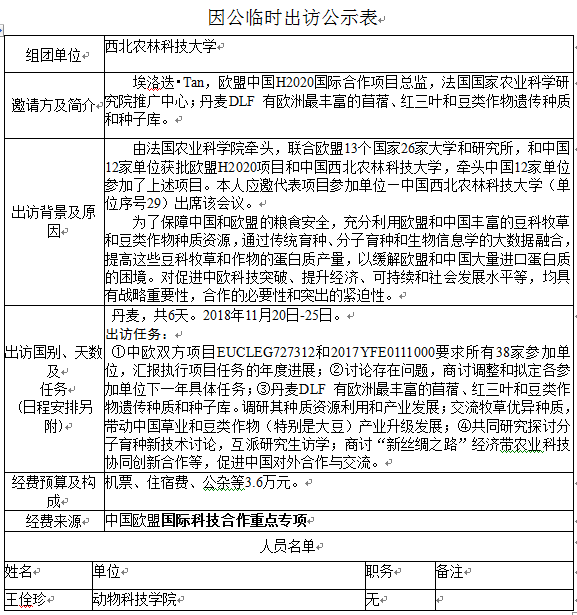 现将王全珍教授因公出国情况公示如下: