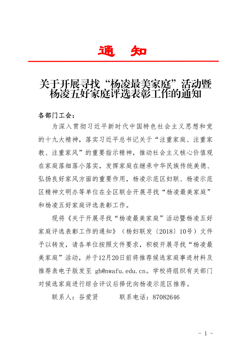 » 关于开展寻找“杨凌最美家庭”活动暨杨凌五好家庭评选表彰工作的通知