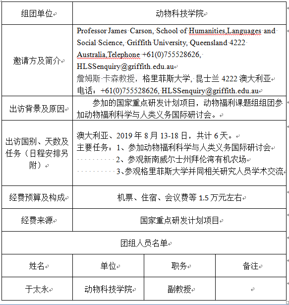 现将于太永副教授因公出国予以公示,公示期自2019年7月3日至2019年7月7日。如有举报意见,请以书面或口头形式向国产在线 党政综合室反映,电话87092937。(公示内容见下表)