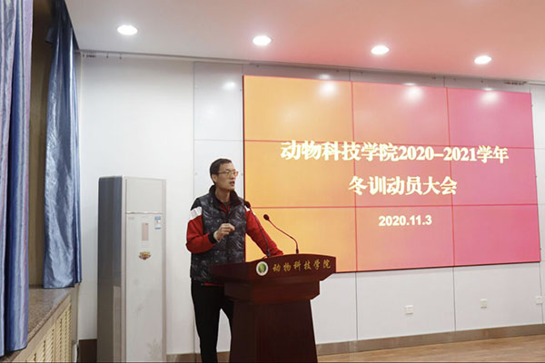 为鼓励同学们积极参与冬训,增强身体素质,11月3日晚,国产在线 2020年冬训动员大会于动科楼107会议室如期举行。莅临本次会议的老师有18、20级辅导员冯来顺老师,19级辅导员张明侠老师和体育辅导员冯鑫老师。