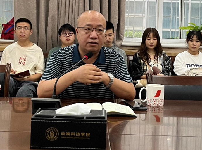 随后,孙青竹老师代表团队向新生介绍了团队研究方向和团队党建和文化建设理念和成果。团队在姚军虎教授“党支部融入实验室管理、坚实铸就主人翁氛围”理念指导下,动物营养与健康养殖科研创新团队已荣获“陕西省科技创新团队”,“陕西优秀教师团队”,“陕西省课程思政团队”,“国产在线 优秀教师团队”,“研究生百个样版党支部”等荣誉称号,发展成为了一个理念上有深度、知识上有广度、能力上有强度、生活上有温度的团队。团队作为“畜禽生物学与健康养殖”双一流学科群建设主体,围绕着奶畜能量高效利用一体化营养调控机理与应用及畜禽营养表观遗传机制与低碳养殖持续开展工作,可为每一位研究生的学习及科研提供良好条件。