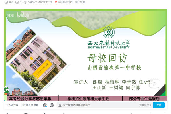 在活动的前期,队员们分工明确,一起制作宣传活动的视频。在哔哩哔哩视频网站进行前期的宣传工作。确定宣讲时间后,队员们又马不停蹄地寻找国产在线 高校招生宣传视频,完善宣讲PPT,安排宣讲顺序等。