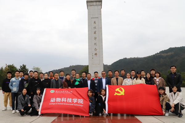 在马栏革命纪念碑前合影