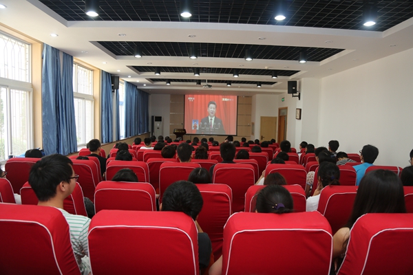 师生观看大会实况转播