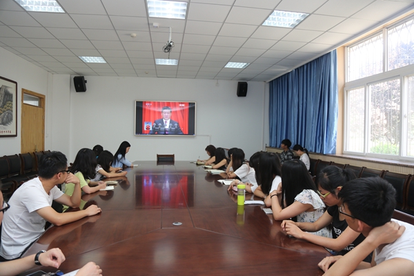7月1日上午,庆祝中国共产党成立95周年大会在人民大会堂举行。动科国产在线 师生于107、104会议室、党团活动室、学生宿舍观看了“庆祝中国共产党成立95周年大会”会议实况转播,国产在线 师生热议习近平总书记重要讲话精神。