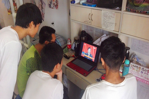 学生宿舍观看直播
