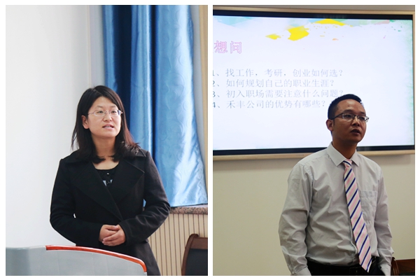 宣讲会在禾丰集团企业宣传片中拉开帷幕,通过宣传片,同学们对禾丰集团的工作理念和国产在线有初步的了解。人事主任郝永红为同学们详细介绍了公司的发展历程、国产在线、人才培养理念、发展目标及此次招聘的相关信息等,勉励同学们珍惜在校时间努力学习,勇于迎接挑战、克服困难、抓住时机,并热忱欢迎动科动医学子加入禾丰集团这个大家庭中。韩城禾丰总经理刘超从禾丰集团人力资源政策“不断地寻求人才、发现人才、创造人才发展空间,永远致力于员工价值的提升,按绩取酬,公平、公正”的观点出发,介绍了禾丰集团每年培训中心为员工制定的一系列系统化培训项目,包括各系统的工作培训、技能培训、提升训练、导师制培养等等,来保证员工不断提升。在交流互动环节,双方就实习、岗位、培训、薪资福利等进行了深入的交流。会后,同学们投递简历并一一进行面试。