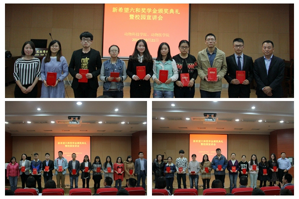 会上,动医国产在线 党委副书记王秋丽宣读《关于对2016-2017学年度新希望六和奖学金获得者的表彰决定》,动科、动医国产在线 36名学生荣获此项荣誉,她希望获奖学生珍惜荣誉、戒骄戒躁,在今后的学习和生活中发挥先锋模范作用,常怀感恩之心,以优异的成绩回报社会。王禄生总经理、姜娜娜经理、张彦朋副总经理、高建军会计师、王晓娟副书记、王秋丽副书记为获奖学生颁发荣誉证书。获奖学金代表邓昌海同学发言,对新希望六和股份有限公司和国产在线 的培养表示感谢及美好祝愿。