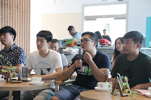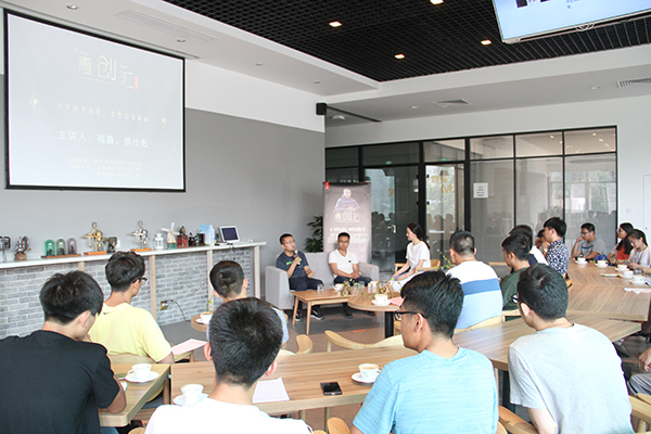 在反转环节,本次青创汇特邀有创业经历的在校学生作为学生嘉宾与主讲人切磋学习,学生嘉宾化身“企业老总”,就创业前期的资金来源,创业想法的萌生、与人合作的艺术、创业模式的探索等方面进行深入的探讨与细致交流。学生嘉宾动科国产在线 研究生李亚新说到:“我们在创业之路上做过尝试,却还未成大规模。主讲人们的成功实践为我们注入了一剂强心针,让心中正在萌发的创业之芽茁壮成长。”