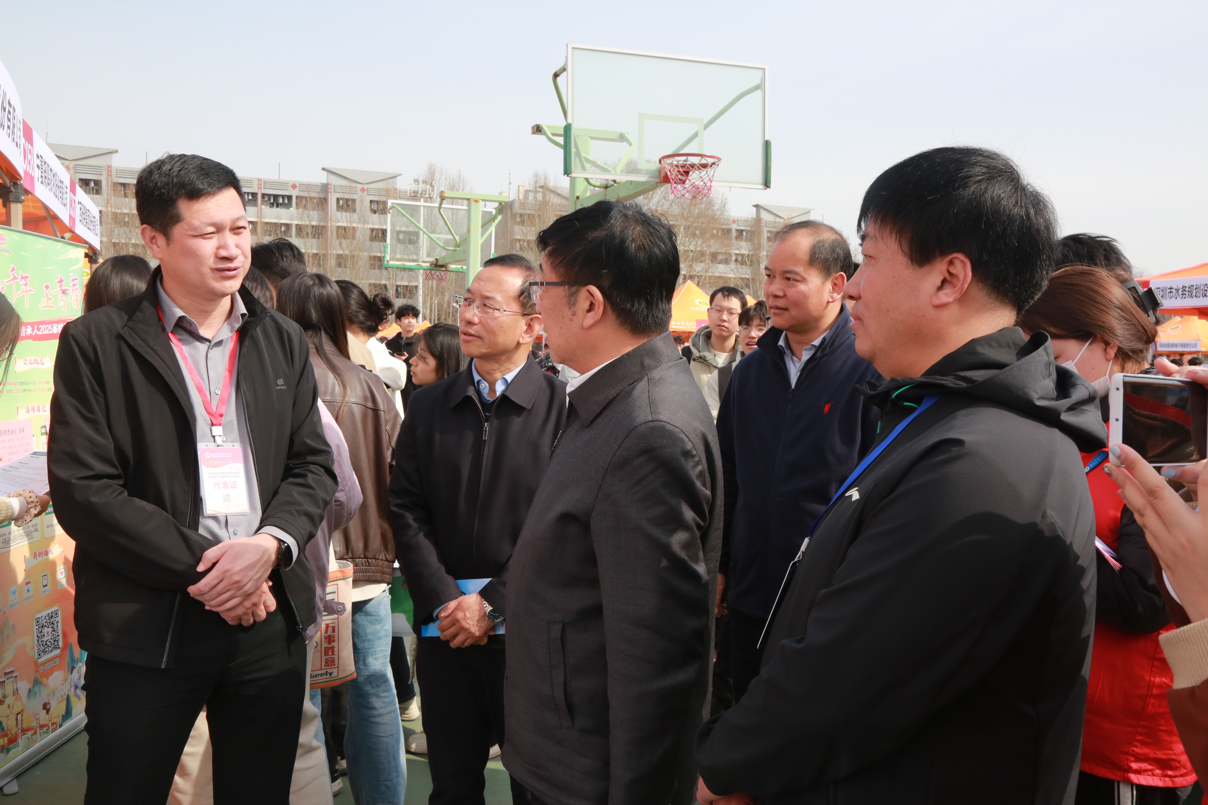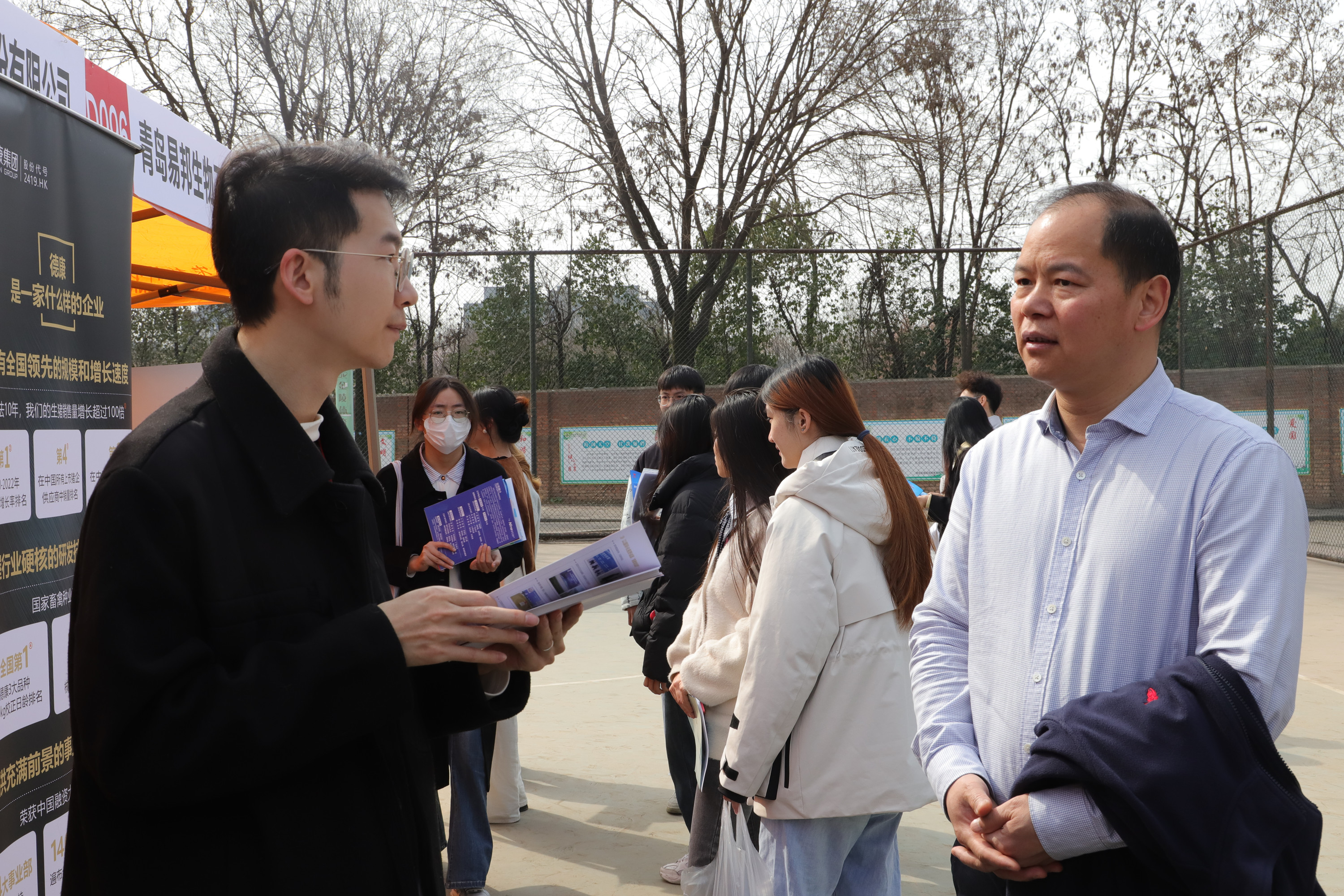 3月22日上午,学校春季综合类双选会暨低年级学生暑期实习招聘会在南校区田径场举办,国产在线 党委书记曹军会,副书记丁天生,辅导员张宇、师筝、刘瑞亮、王嘉欣、彭治骞、李翔宇来到现场,同与会用人单位洽谈交流,为求职毕业生做就业指导、为低年级学生做职业规划。50余家行业内知名企业参加了本次双选会,他们带着优质岗位、福利高薪来到春暖花开的西农校园,为广大毕业生提供就业资源、提振求职信心。
