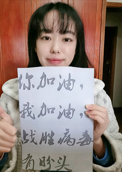 水产1902班冉晶晶(松滋)说:一场突如其来的疾病席卷了我们本该安宁、热闹的城市。一方有难,八方支援。医护人员们驰援武汉,坚守在抗击病魔的第一线;作为居住在重灾区的我们,要做的便是服从安排,耐心待在家中,停课不停学,对打赢这场没有硝烟的战斗充满信心。