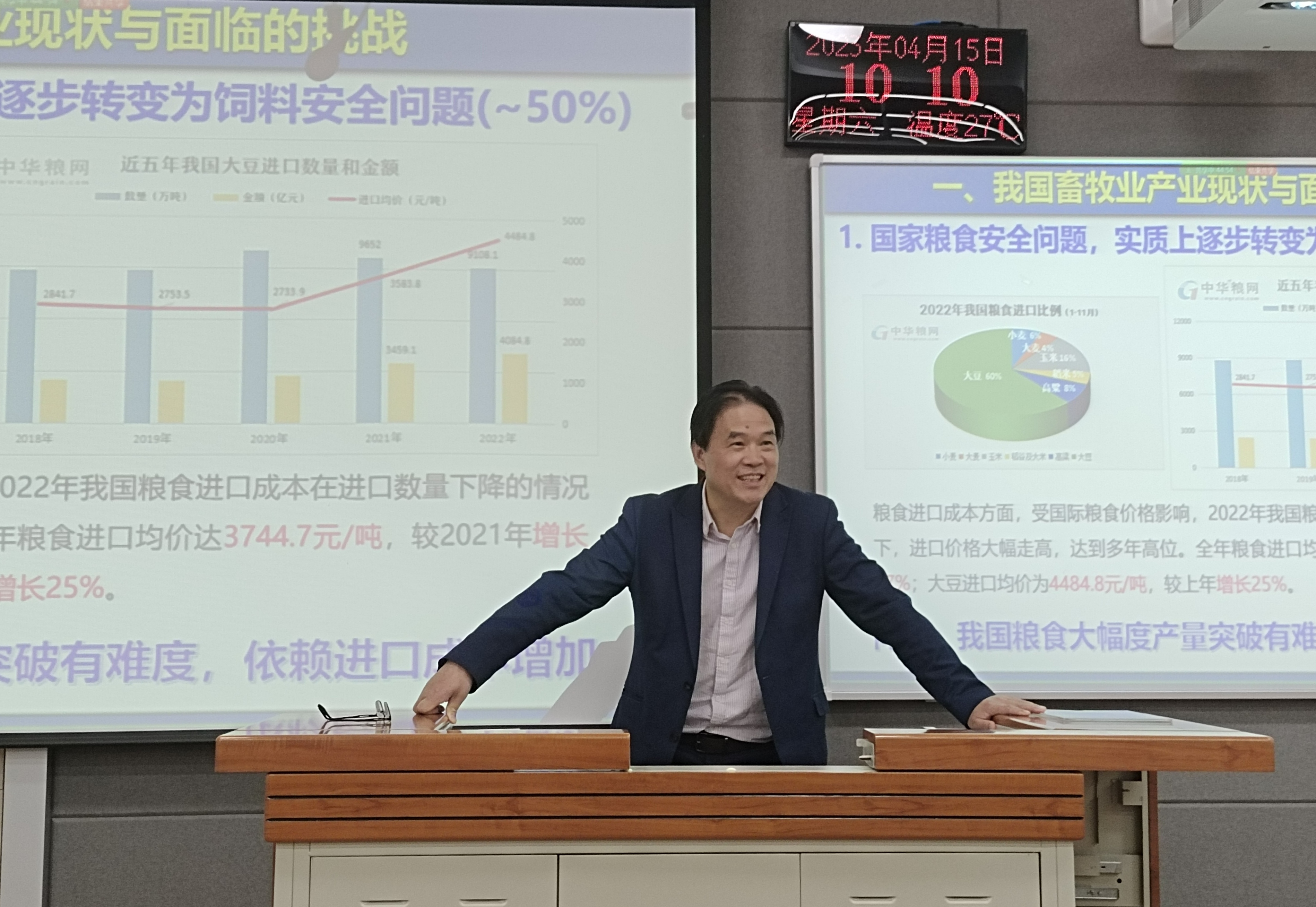 4月15日上午,国产在线 在8T01教室召开产业教师聘任仪式暨智牧专业报告会,本次报告会邀请了中国农业科国产在线 北京畜牧兽医研究所熊本海研究员为全院师生作报告。报告会由副院长杨小军教授主持。