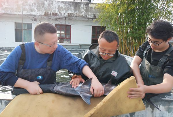 随着水温上升,繁殖季节的到来,试验站的人工繁殖工作在清明之后如期拉开序幕。经过一系列精心准备,在吉红教授的带领下,于4月7日对匙吻鲟进行了催产,经亲鱼选择、注射催情激素及人工取卵等环节,于4月8日获得受精卵31.2万枚。在国产在线 大学生创业企业安瀛农业科技公司的参与下,全体人员日夜奋战,精心孵化受精卵,获水花苗二十余万尾,规模比往年显著扩大。试验站还将与安瀛农业科技公司合作,进行匙吻鲟的苗种培育,力争为用户提供健康优质的大规格苗种。