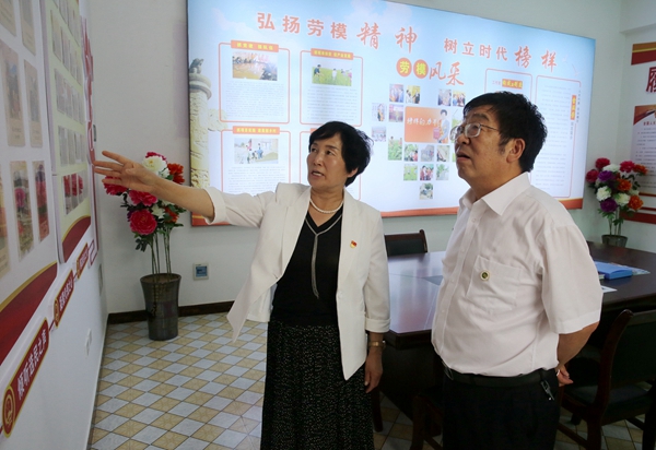 全国人大代表、社区党总支书记雷温芳向吴校长介绍社区发展
