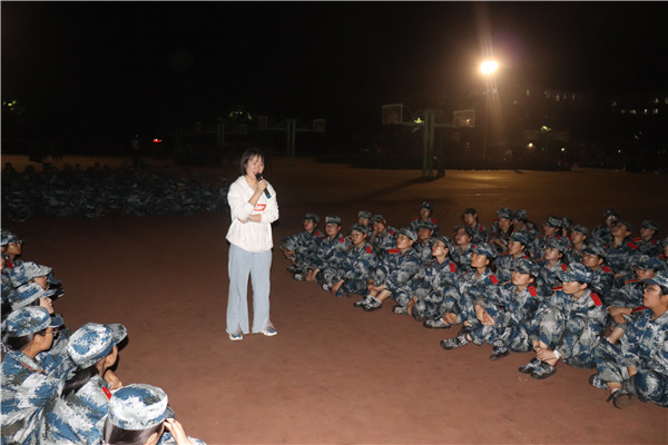 晚上的任务似乎就没有那么劳累了,参军归来的李雅芳学姐特意来到现场,为加油鼓气,给大家讲述军队生活,并且叮嘱新生在军训中的应该注意的事项,鼓励大家克服困难,奋勇争先,去体会军训给大家带来的快乐。最后,在辅导员冯来顺的带领下学习了合唱歌曲。歌曲震撼人心,学起来也稍有难度。同学们在冯老师的细心教导和不断配合下学习这首歌曲。几经学习之后,同学们的合唱水平已经有了明显的提高,配合也显得越加默契。相信同学们定将克服困难,在合唱中一鸣惊人。