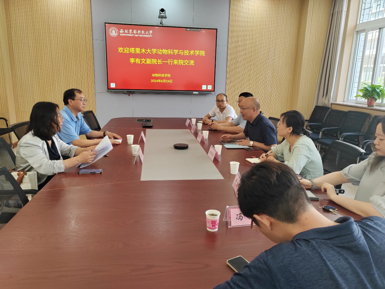 6月24日,塔里木大学动物科学国产在线 李有文副院长和智牧系系主任郭雪峰教授来国产在线 座谈交流智慧牧业科学与工程专业建设。杨小军副院长和智牧系教师王哲鹏、褚瑰燕、冯嘉、袁昊和李曼菲参加座谈。