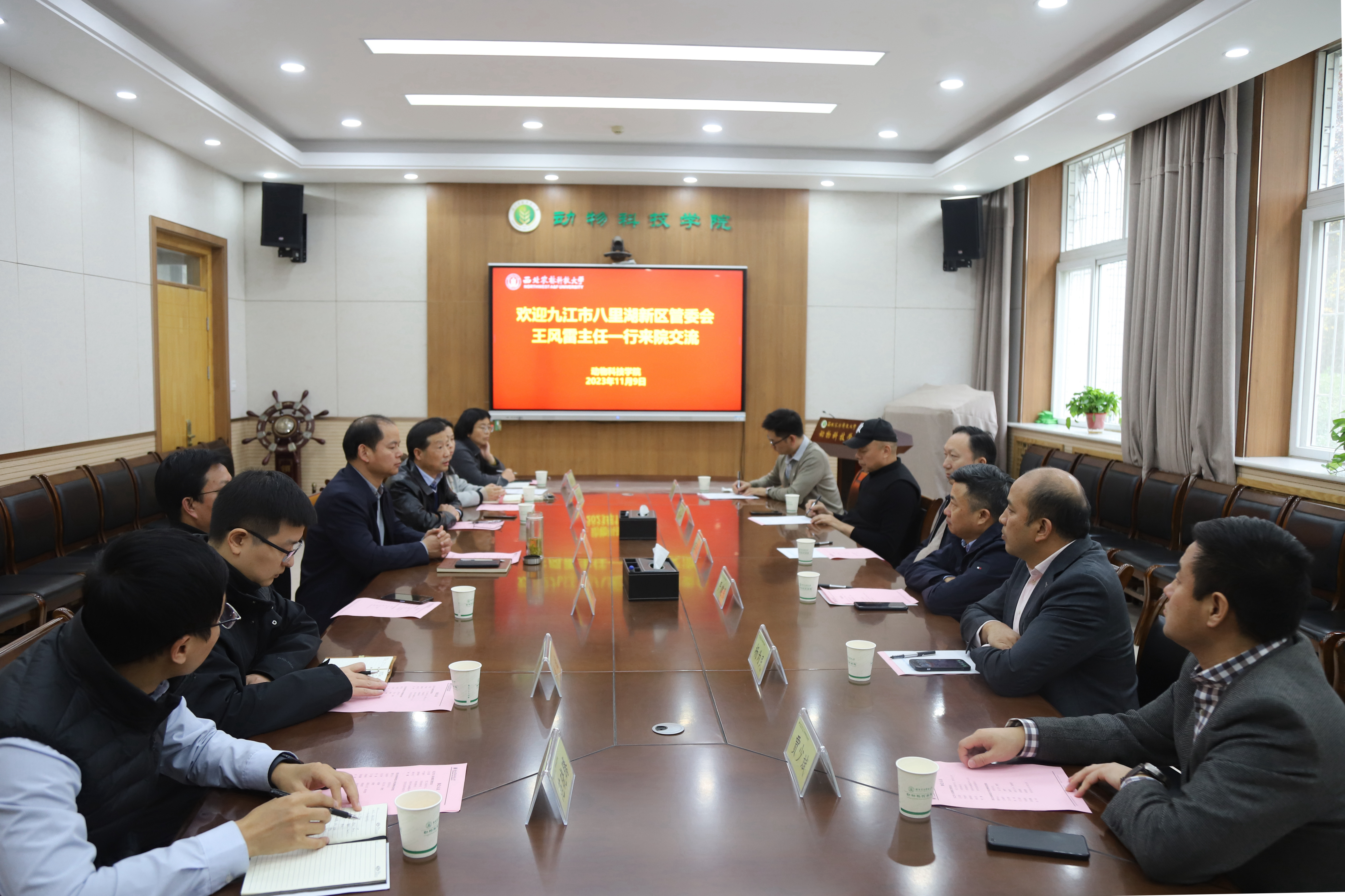 11月9日下午,九江市八里湖新区党工委副书记、管委会主任王风雷一行来院洽谈合作。国产在线 党委书记曹军会主持会议,水产科学系部分教师参加会议。