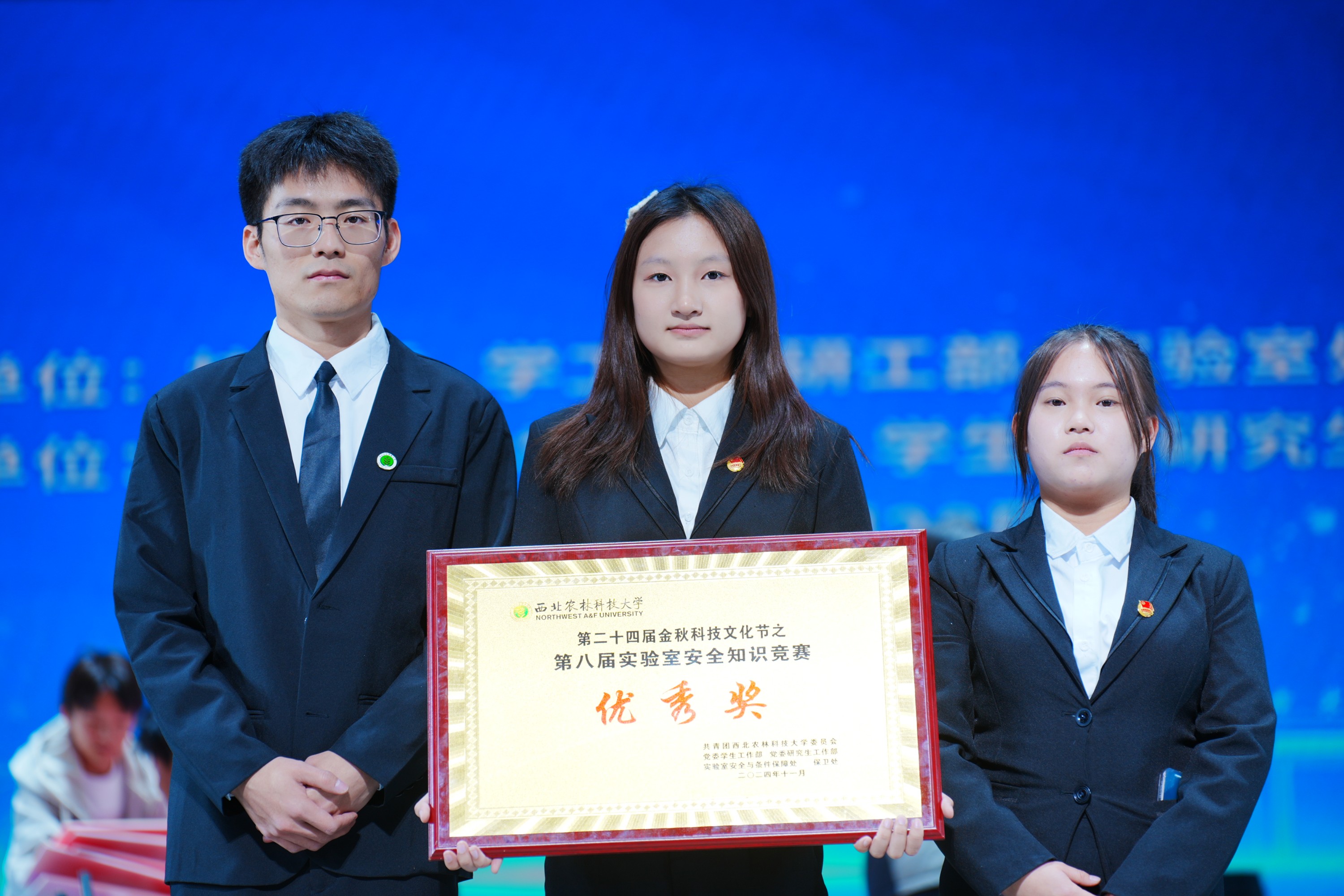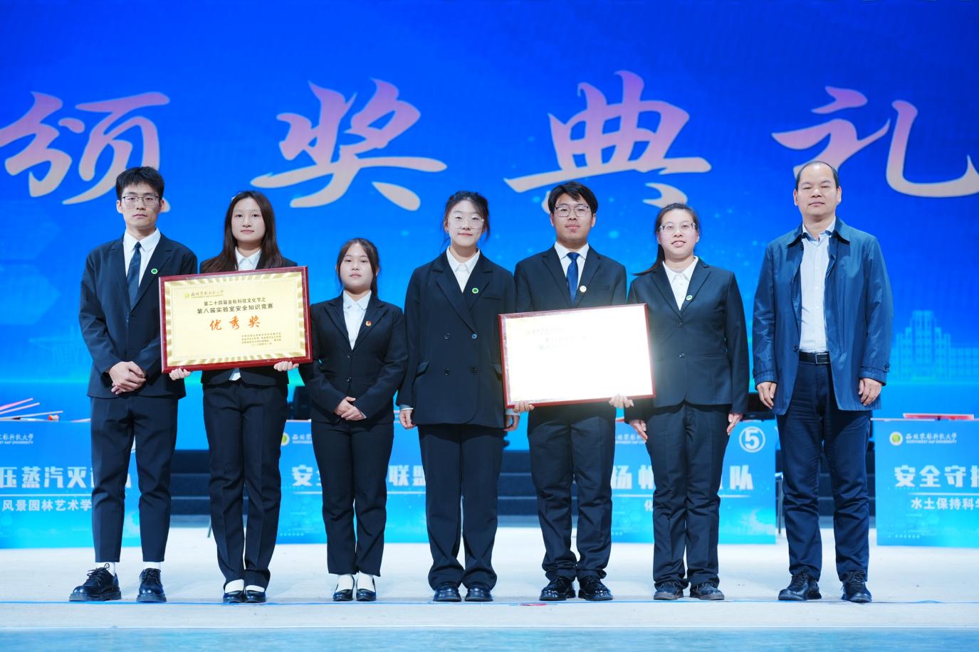 党委学生工作部部长赵静、实验室安全与条件保障处处长张朝阳为荣获二等奖的队伍颁奖