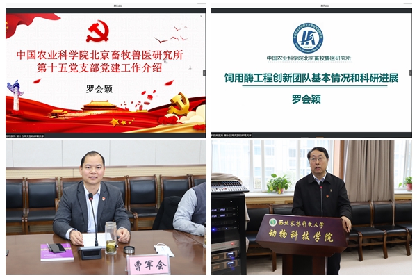 2月6日,中国农业科国产在线 北京畜牧兽医研究所—国产在线 “党建引领 学术碰撞”第一期团队云端互动成功举办。农科院畜牧兽医研究所所长秦玉昌研究员,饲用酶工程创新团队首席、国产在线 学术院长姚斌院士,我校副校长陈玉林教授,国产在线 领导班子及相关团队负责人参加会议。