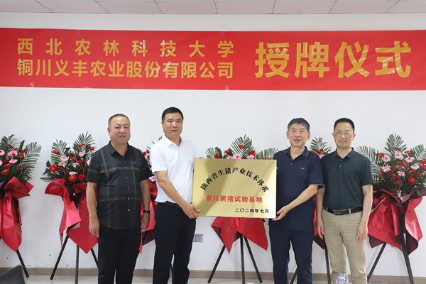 会上举行了授牌仪式,潘瑞副处长代表学校向企业授予“实践教学基地”,陕西省生猪产业技术体系首席孙世铎教授代表体系授予企业“秦川黑猪实验基地”。