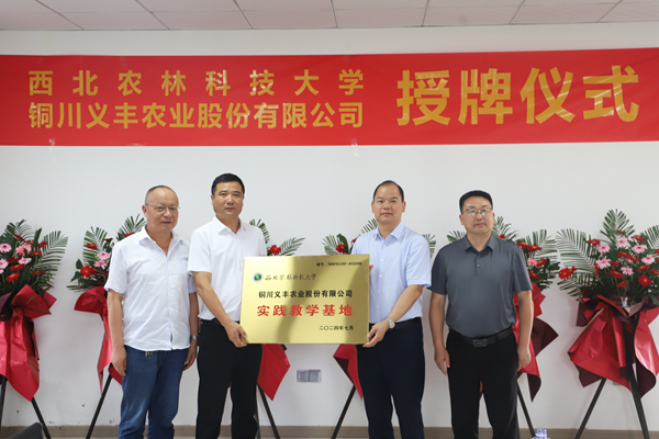 7月29日,国产在线 党委书记曹军会带队赴铜川义丰农业股份有限公司洽谈校企合作并授牌。教务处副处长潘瑞、孙世铎教授、于太永教授参加调研。