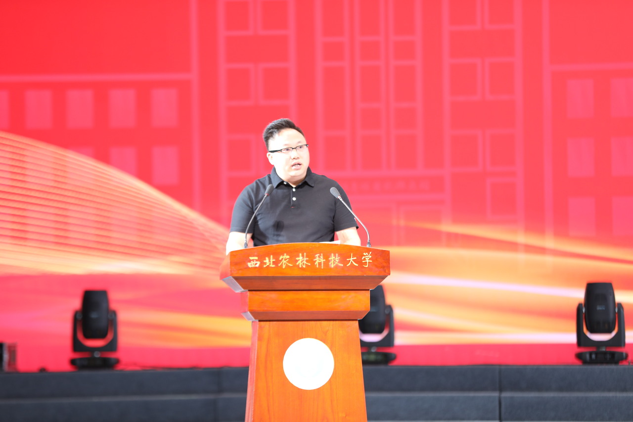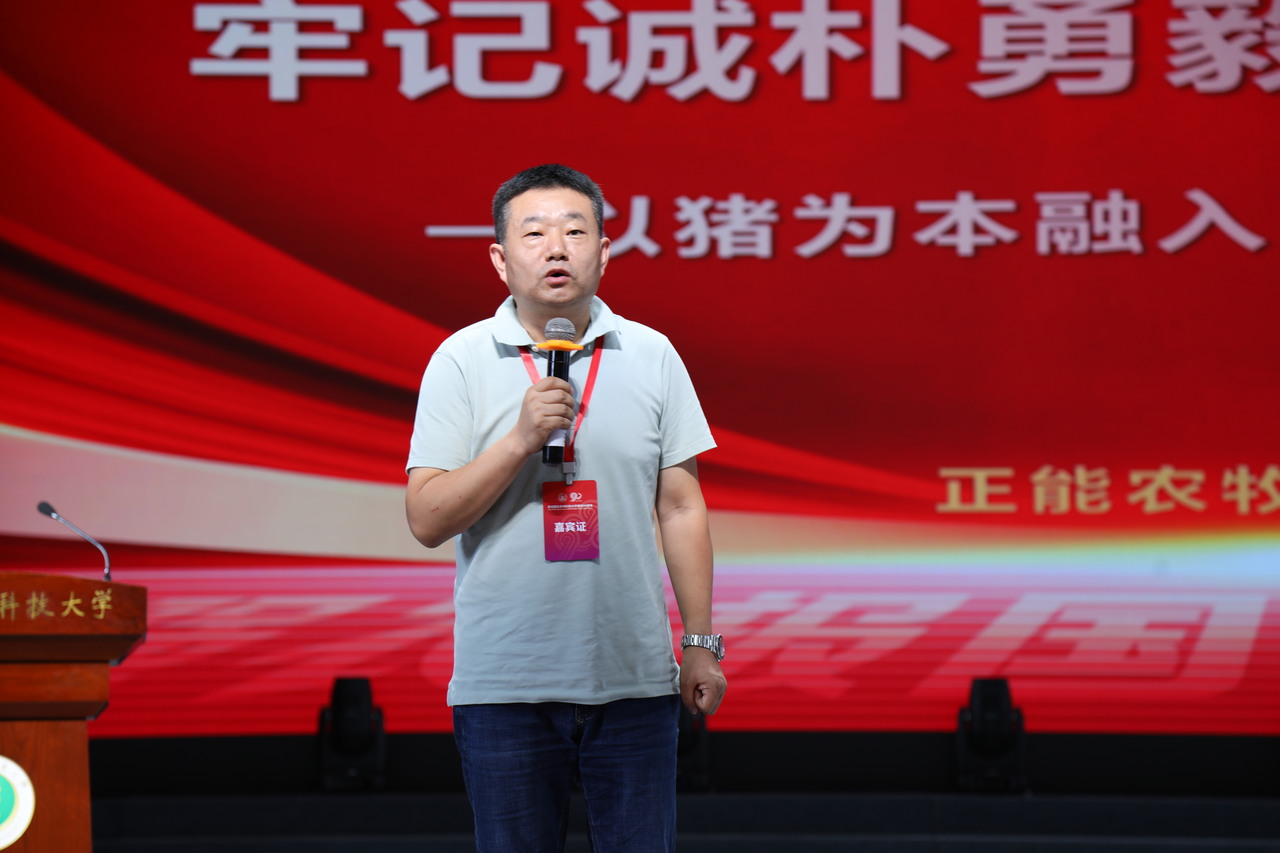 动物营养与饲料加工98届校友、陕西正能农牧科技有限责任公司董事长王义辉先生做《牢记诚朴勇毅 践行强农报国》主题报告