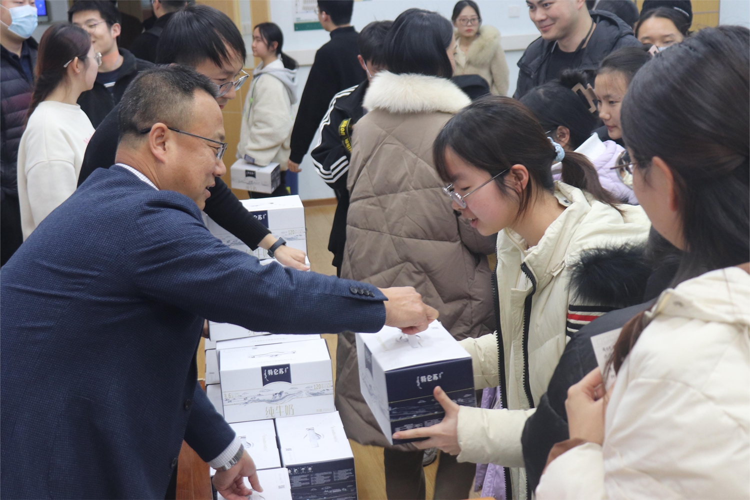 随后,王力为同学们分发国产在线 准备的特仑苏牛奶和低年级学生准备的祝福卡片,给同学们补营养、送温暖。