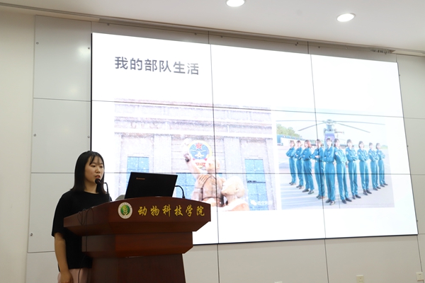 随后,李雅芳、郭家俊两位优秀退伍复学学生,分别从个人应征入伍的初心、入伍国家资助补偿、部队日常训练生活情况及个人能力提升等角度进行了心路历程分享。郭家俊同学谈到:“作为新时代的有为青年,必须以国家大事为己任,以民族复兴为职责,积极响应祖国号召,投身国防事业,我已经实现了自己的军旅梦,希望更多的同学响应祖国号召,携笔从戎,投身军旅绽放青春。”两位同学的分享,揭开了神秘军旅的面纱,展现了不一样的精彩人生。