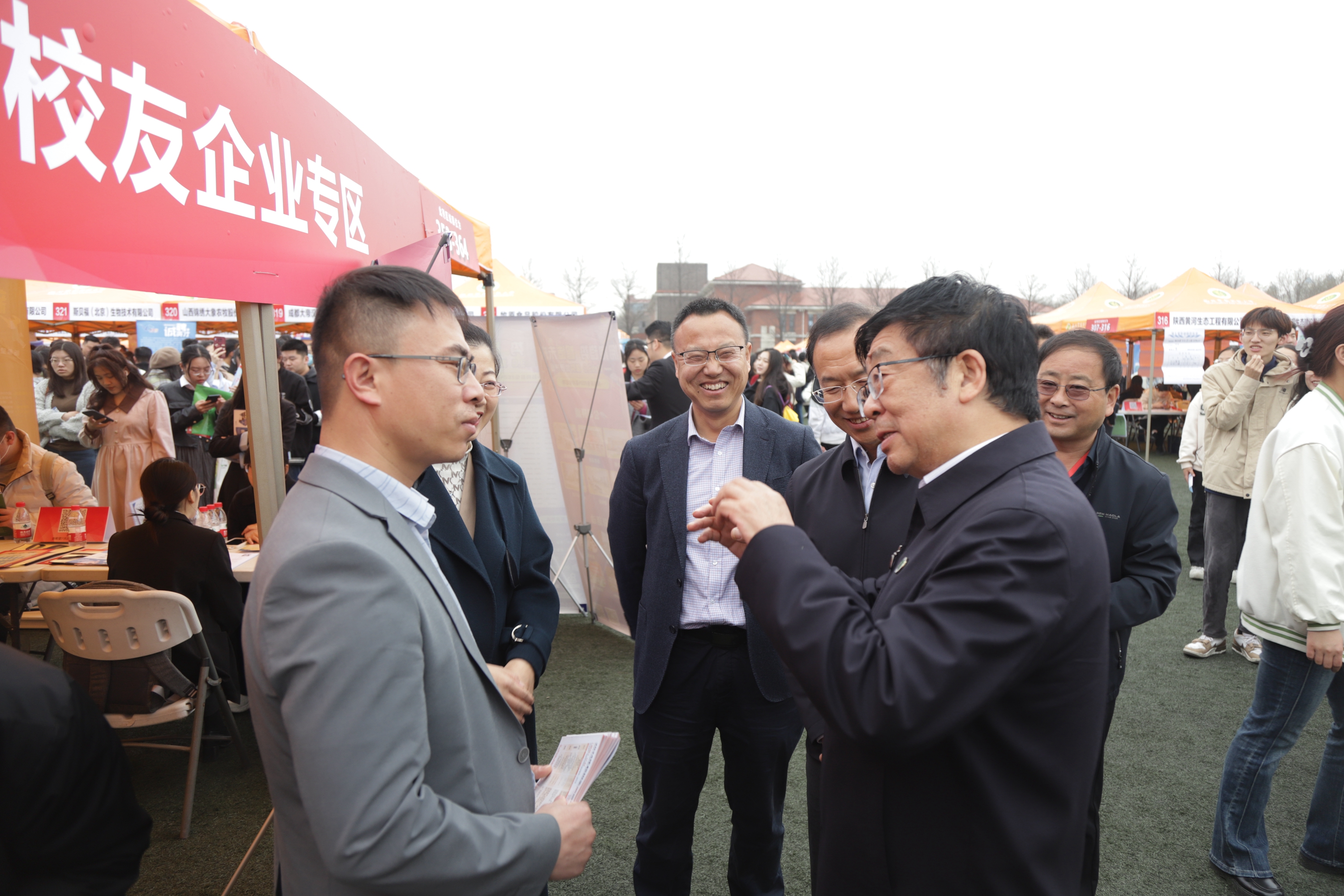 双选会现场,对口企业共有近60家,国产在线 党委书记曹军会,党委副书记王力同用人单位就深化校企合作、提高人才培养质量等方面展开亲切交流。